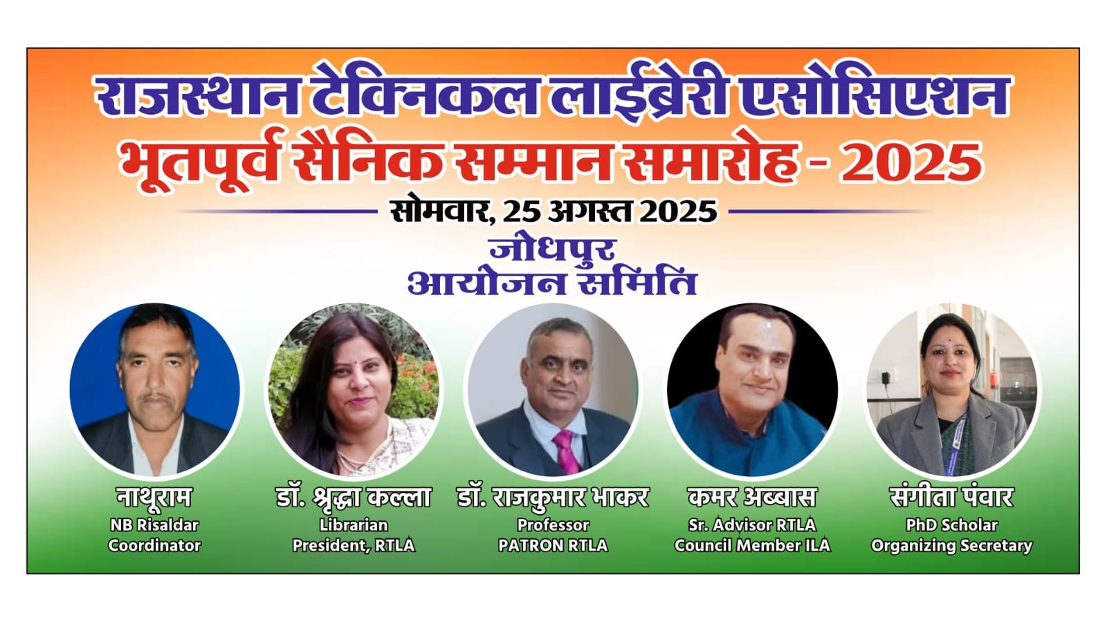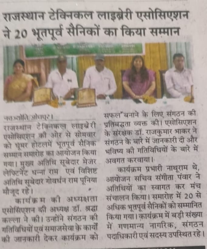 | 20. | August 25, 2025 | Felicitation Program for Retired Soldiers | Mrs. Sangeeta (Organizing Secretary) | RTDC Hotel (Ghoomer), Jodhpur | ||